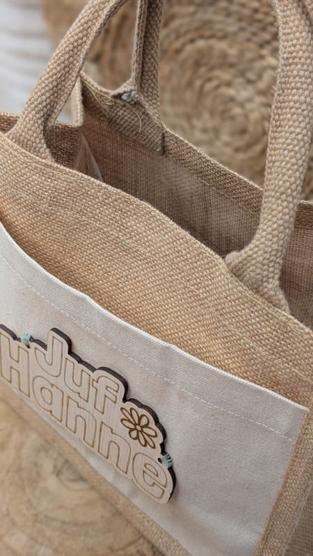 Op zoek naar een origineel juffencadeau of een leuk bedankje voor de juf? Deze mooie jute juf tas met naam is het perfecte cadeau voor het einde van het schooljaar.